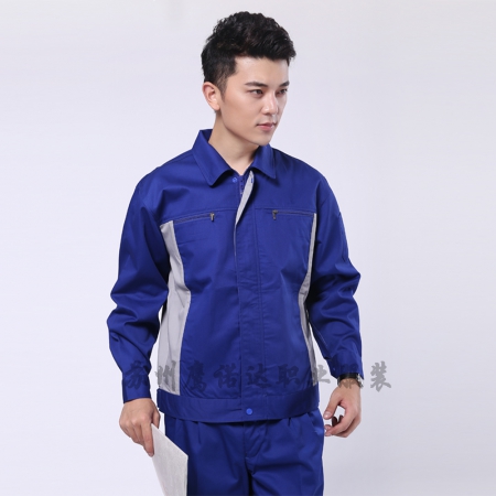 卡其拼藏青涤棉纱卡长袖工衣AC109