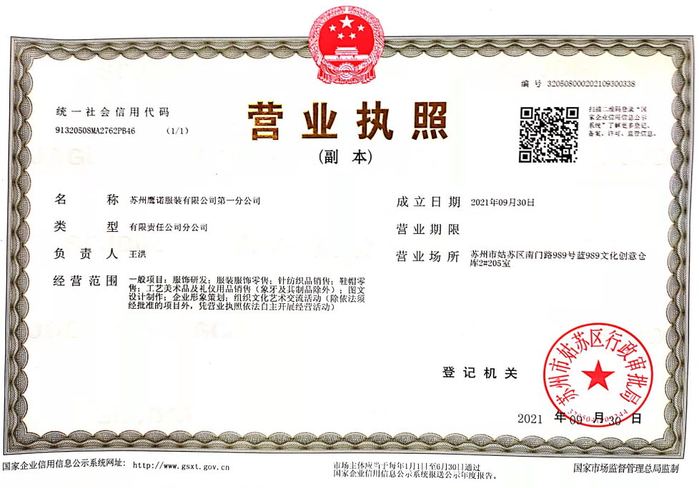 苏州鹰诺服装:鹰诺达重服务守信用企业