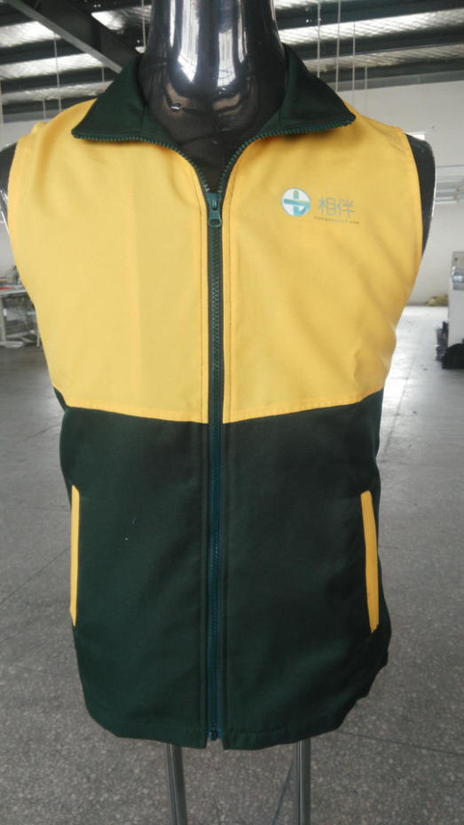 相伴(苏州)科技发展有限公司是苏州一家大型的陪护服务行业。目前找到鹰诺达定做工作服马甲。鹰诺达是工作服定制苏州的工作服厂家,其马甲主要是用于羽绒服外面穿,因此马甲生产的时候做的要稍微大一点目前样衣已经做好。已经寄给其公司采购确认。马甲的主色也是根据其公司的主色黄色和绿色为主。左前胸加上公司的LOGO,后背加上公司的二维码。