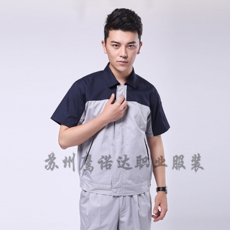 苏州鹰诺服装:浅灰拼绿色涤棉工作服AC121-CQ