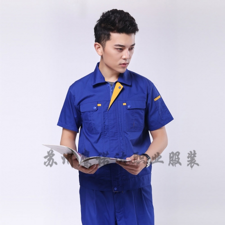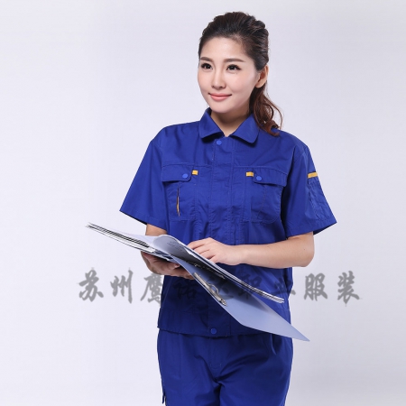 苏州鹰诺服装:深兰色短袖工作服AD04