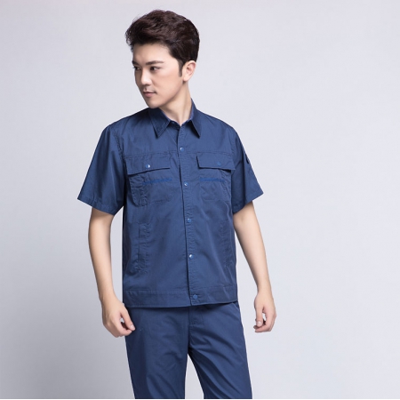 苏州鹰诺服装:清灰拼银灰全棉夏季工作服AD06-2