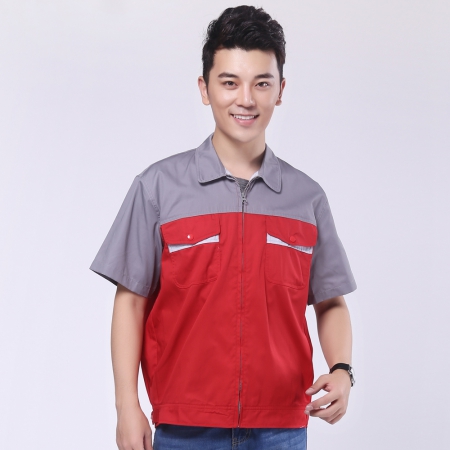 苏州鹰诺服装:藏青拼大红夏季工作服AD103