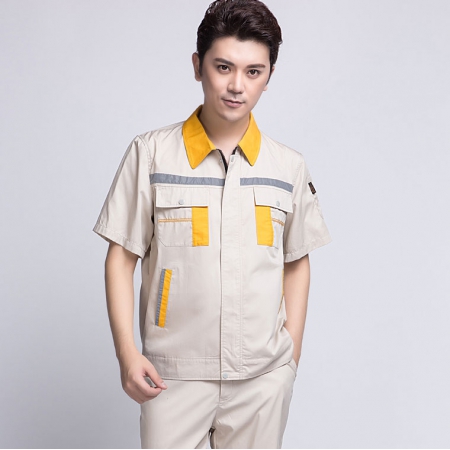 苏州鹰诺服装:橘黄拼黄色短袖工作服AD09-5
