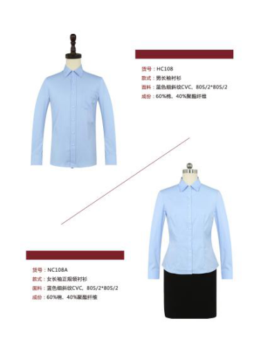 衬衫选择的是竹纤维材质,面料柔软顺滑,颜色选择的是浅蓝色。左胸刺绣上公司的标志