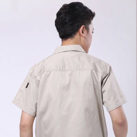 苏州鹰诺服装:黄拼驼色工作服AC20-4