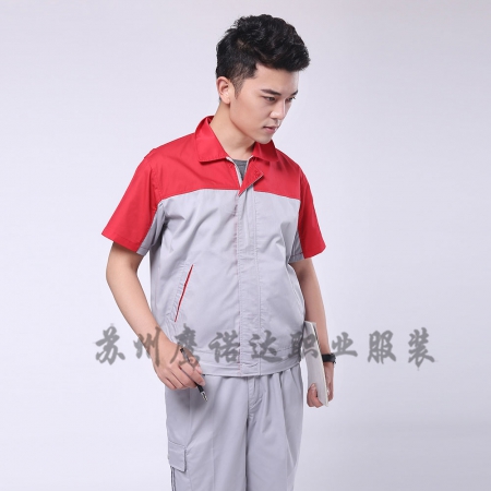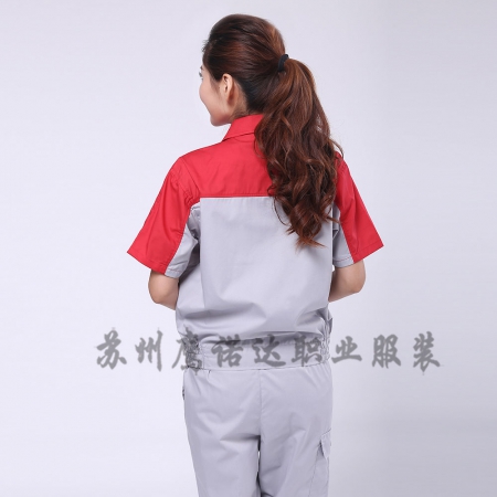 苏州鹰诺服装:大红配浅灰春秋工作服AC078