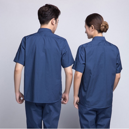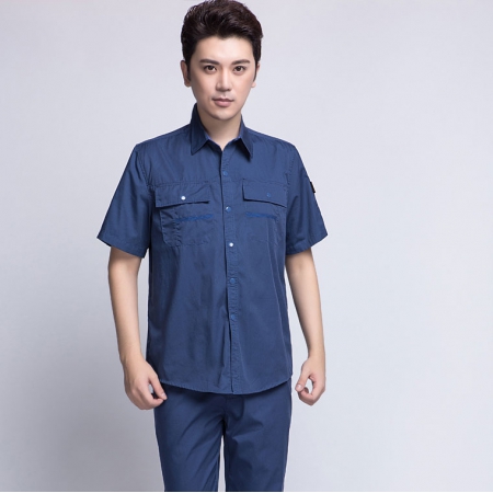 苏州鹰诺服装:深兰色短袖工作服AD04