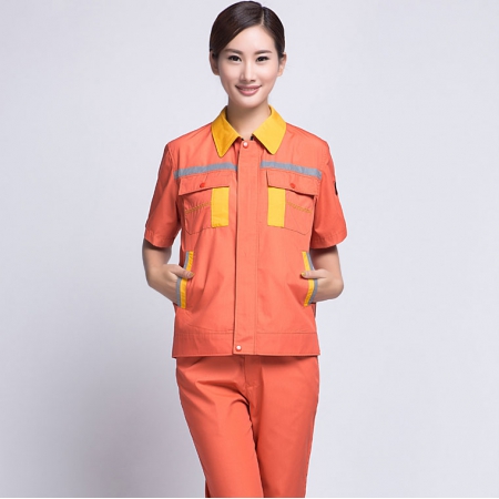 苏州鹰诺服装:橘黄拼黄色短袖工作服AD09-5