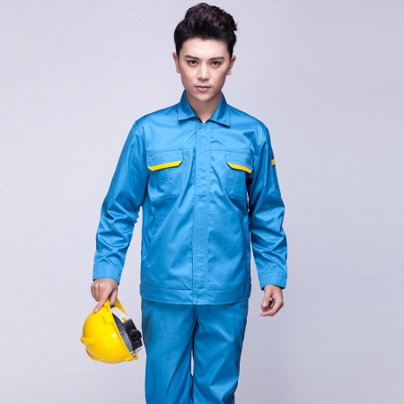 苏州鹰诺服装:中蓝拼黄色春秋工作服AC03-1