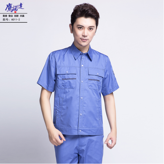 因为日资企业本身服装上就是走简约风的,所以为其推荐了此款,此款采用衬衫式版型,简约风,增体给人一种端庄大气的感觉,也很是符合客户的苏州鹰诺服装,门襟采用纽扣式的,衣服裤袋做了黑色明线作为点缀,客户对于此款式非常满意,并且已经打样,定了大货。