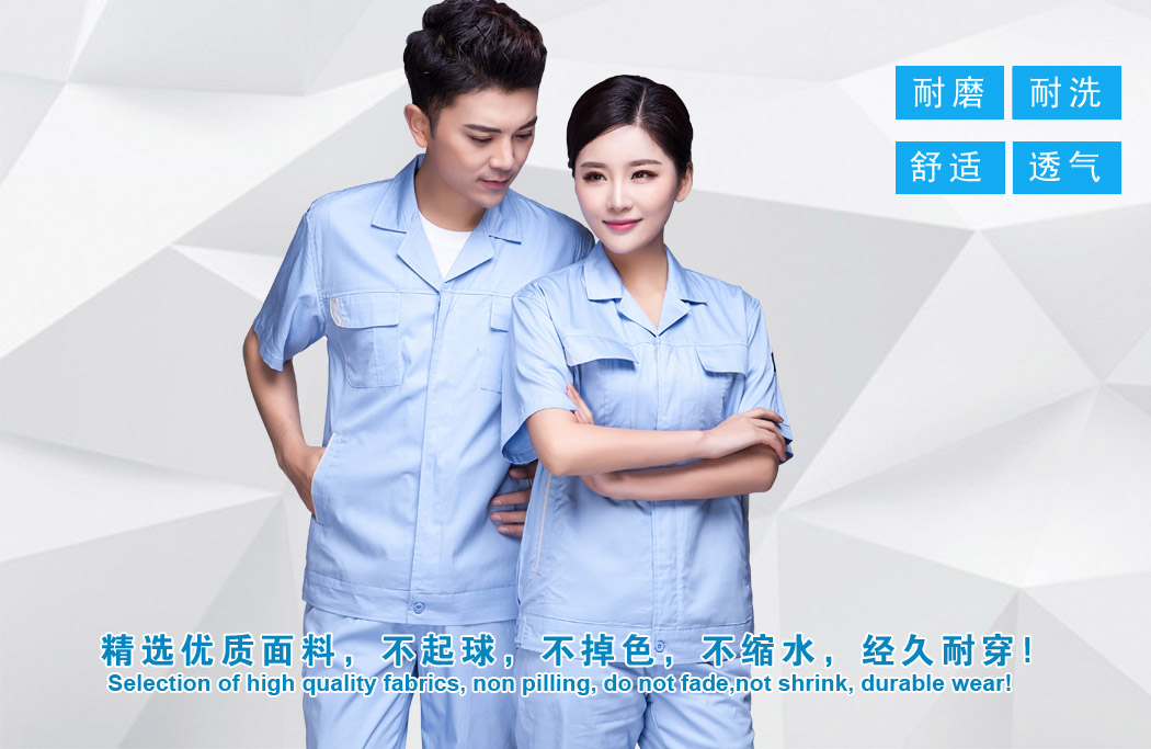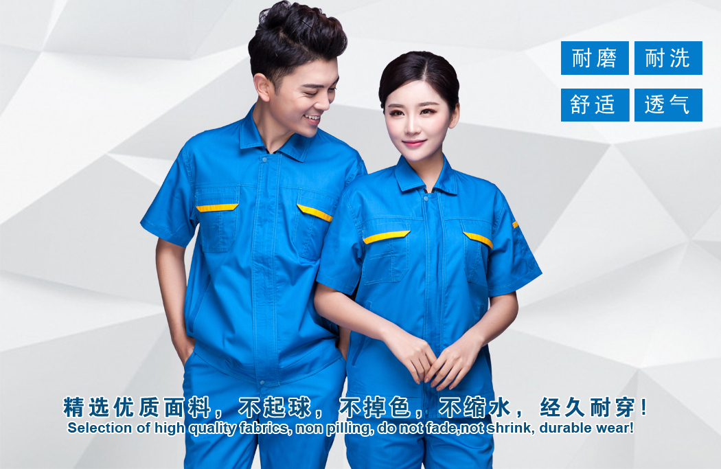 二、机械工人为了避免衣服由于宽松而被机器缠绞在内,面料需要耐摩结实。工作服要求紧身,下摆要有松紧或是可以收紧、袖口带松紧可以收的、裤腿都是可以扣起来的,与此同时,布料要求较结实、耐磨,防油渗透,色泽以较深为宜。