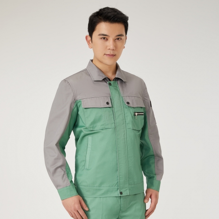 苏州鹰诺服装:浅灰拼艳蓝色工作服AC2204-4