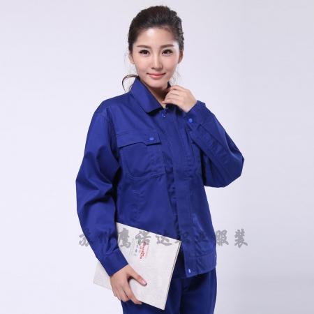 苏州鹰诺服装:艳蓝配浅灰涤棉纱卡商场工作服AC081-CS