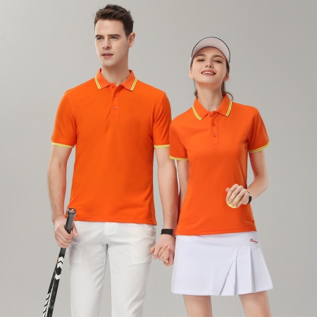 苏州鹰诺服装:桔色提花领莱赛尔纤维棉Polo衫ID6120-4