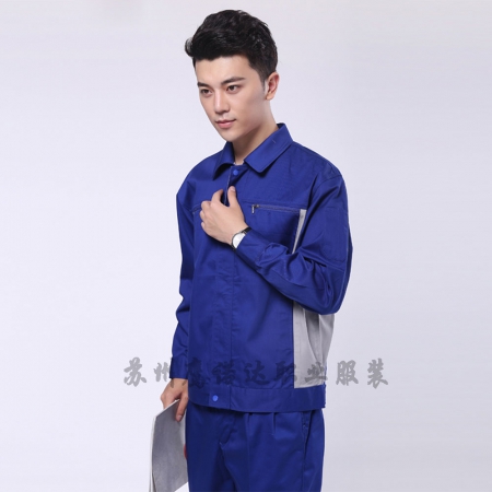 苏州鹰诺服装:艳蓝配浅灰涤棉纱卡物物流库房的工作服AC072-WL