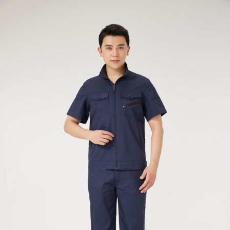 苏州鹰诺服装:深蓝拼浅蓝色工作服AD2205-1