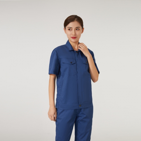 苏州鹰诺服装:浅灰拼艳蓝色工作服AD2204-4