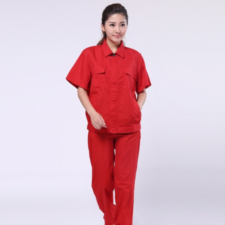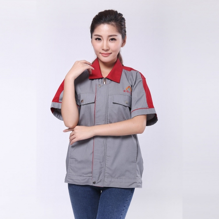 苏州鹰诺服装:米白拼红色夏季工作服AD019-XJ