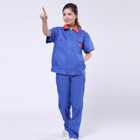 苏州鹰诺服装:深银灰拼橘黄夏季工作服AD056-XJ