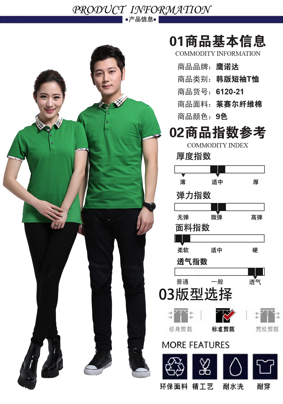 - 游客于 2018-04-03 09:54:24 发表苏州鹰诺服装:叶绿提花领莱赛尔纤维棉Polo衫ID6120-21