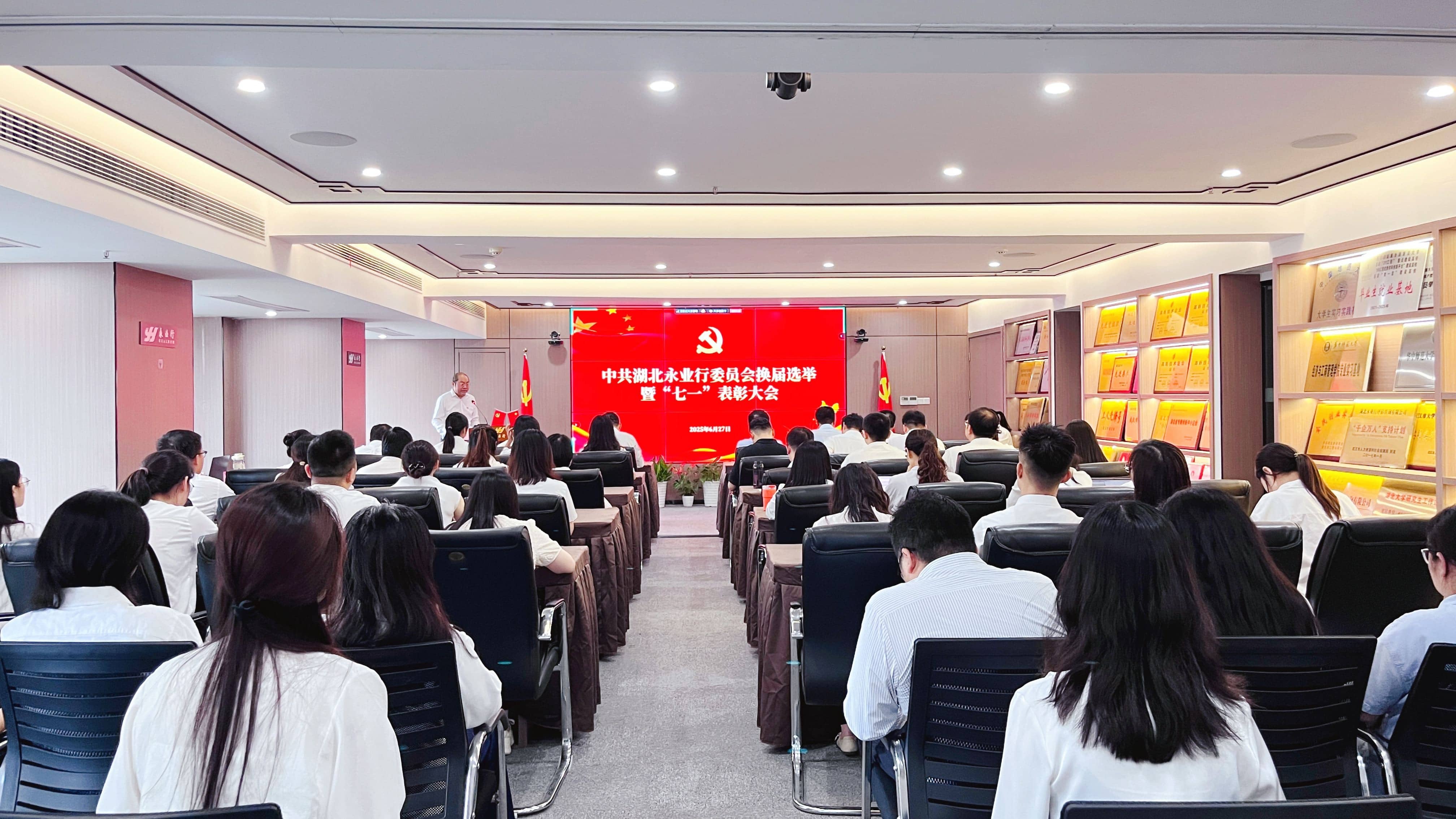 2025年6月27日,中共湖北永业行委员会召开党委换届选举暨“七一”表彰大会。武昌区委统战部常务副部长陆峰,武昌区委统战部副部长、区工商联党组书记、会员企业党委书记吕志新到会指导,永业行全体党员共计200余名通过线上线下相结合的形式参加会议。会议由永业行党委委员、常务副总裁吴学锋主持。 大会在庄严的国歌声中开幕。会议审议通过了永业行党委第三届工作报告,并严格履行组织程序,选举产生新一届党委委员会。随后,新一届党委委员会召开第一次全体会议,选举潘世炳同志担任党委书记,并研究确定党委委员工作分工等事项。 大会对过去一年表现突出的3个先进党支部和21名优秀共产党员