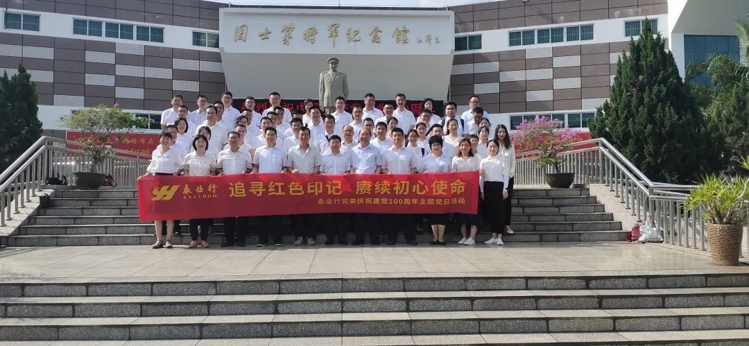 为纪念建党100周年,重温峥嵘岁月,传承红色基因,6月28日,永业行党委委员、副总裁雷小军、吴学锋,党委委员、助理总裁雷小明,党委委员刘亚玲、孙宇,党员及管理层代表赴海南省琼海市周士第将军纪念馆开展“追寻红色印记 赓续初心使命”主题党日活动。 周士第将军是共和国开国上将,生前为中华民族独立与解放、为中国人民解放军的建设事业、为中国特色社会主义建设贡献了光荣的一生。在纪念馆内,大家参观了周士第将军参加革命活动的珍贵照片、文献资料和大量文物,详细了解周士第将军戎马一生的丰功伟绩,再一次接受了红色精神的洗礼。 在革命先烈的注视下,所有党员干部重温入党誓词,用嘹亮的