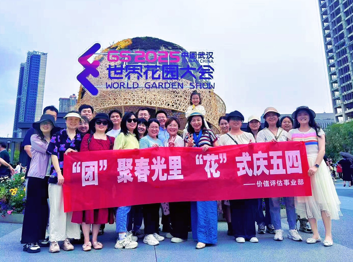 春意盎然,万物竞发。为弘扬五四精神、展现新时代青年风采,价值评估事业部30余名青年员工齐聚武汉市沙湖公园C区世界花园大会场地,以一场“团聚春光里 花式庆五四”主题活动,在缤纷花海中书写青春诗篇,共赴一场春日与理想的浪漫之约。 01徜徉花海,共绘春日活力画卷 在世界花园大会团建活动中,青年员工们化身“春日探索者”,或驻足于月季花前轻嗅芬芳,任馥郁沁入心脾;或流连于创意主题花园间捕捉光影,将匠心定格镜头;或徜徉于春日暖风中舒展眉眼,让惬意漫过肩头。花影摇曳间,青春的笑靥与烂漫春色相映成趣,构成一幅