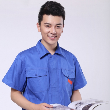 苏州鹰诺服装:深蓝配桔红春秋工作服AC069