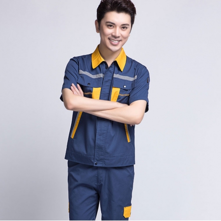 苏州鹰诺服装:深蓝配桔红春秋工作服AC069