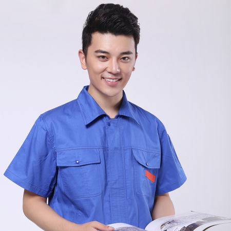 苏州鹰诺服装:湖蓝拼浅灰工作服AC20-2