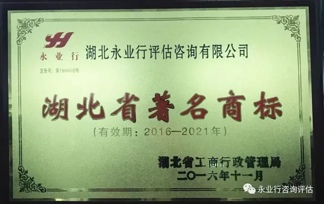 作为湖北省评估行业首家获得省、市级著名商标的企业,永业行历来十分重视商标使用、管理和保护等工作,组建了严密的商标管理组织架构,注册了涵盖不动产评估咨询等29大类的"永业行"服务类注册商标,注重保护商标专用权,维护商标信誉,先后两次被认定为湖北省、武汉市著名商标。