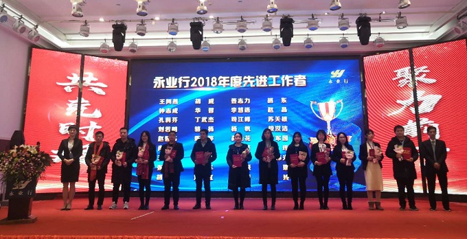 2019年1月28日上午,永业行2018年度总结表彰大会隆重召开。会上全面回顾和总结了2018年工作,对一年来涌现出的先进集体和先进个人进行表彰,安排部署2019年的工作。董事长兼总裁潘世炳发表“新时代 新挑战 新突破”的主题讲话。名誉董事长方国成,执行总裁王琴,副总裁雷小军、靳剑辉、刘晓峰,咨询业务总监文云波,国土业务总监吴学锋,各部门负责人、先进代表、员工代表等600余人参加会议。