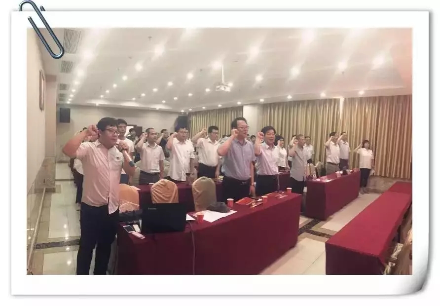 活动中,湖北永业行鄂东党支部党员代表夏宝柱同志领誓,与会党员集体面向党旗重温了入党誓词;武昌区工商联机关党支部党员代表邓志刚同志带领大家诵读了《中国共产党章程》第五章--党的基层组织;武昌区工商联副调研员、机关党支部书记王志建同志带领大家认真学习了“不忘初心、牢记使命”主题教育工作会议精神和《中国共产党党员教育管理工作条例》;湖北永业行党委副书记靳剑辉同志围绕本次活动主题为大家讲授了一堂特色党课;湖北永业行鄂东党支部党员代表雷伟同志、武昌区工商联机关党支部党员代表邓志刚同志分别结合各自的工作实际作了交流分享。