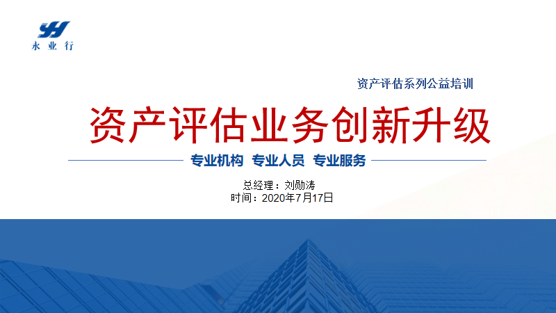2020年7月17日,湖北省资产评估协会举办《后疫情时期湖北省资产评估行业公益讲座》,永业行资产评估部总经理刘勋涛受邀参会,并围绕资产评估业务创新升级作主题演讲。湖北省内众多行业专家、资产评估机构负责人及评估从业人员通过腾讯会议APP线上参加了此次研讨会。