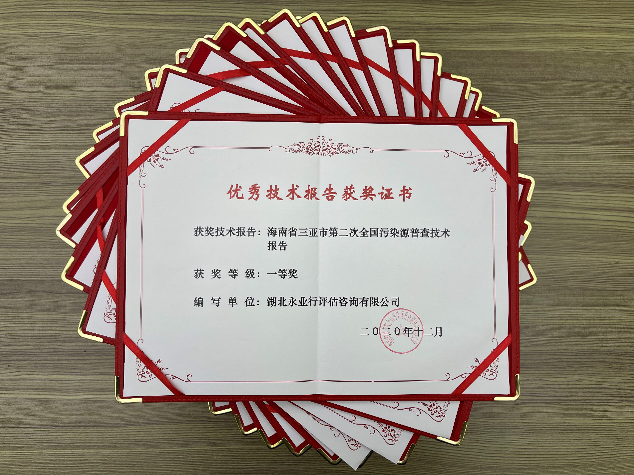 4份技术报告参与海南省省级评比获奖,占海南省获奖总数三分之一,包括《海南省三亚市第二次全国污染源普查技术报告》、《东方市第二次全国污染源普查技术报告》、《文昌市第二次全国污染源普查技术报告》、《东方市第二次全国污染源普查工业源普查技术分析报告》,分别获得一等奖、二等奖、三等奖和优秀专题报告。