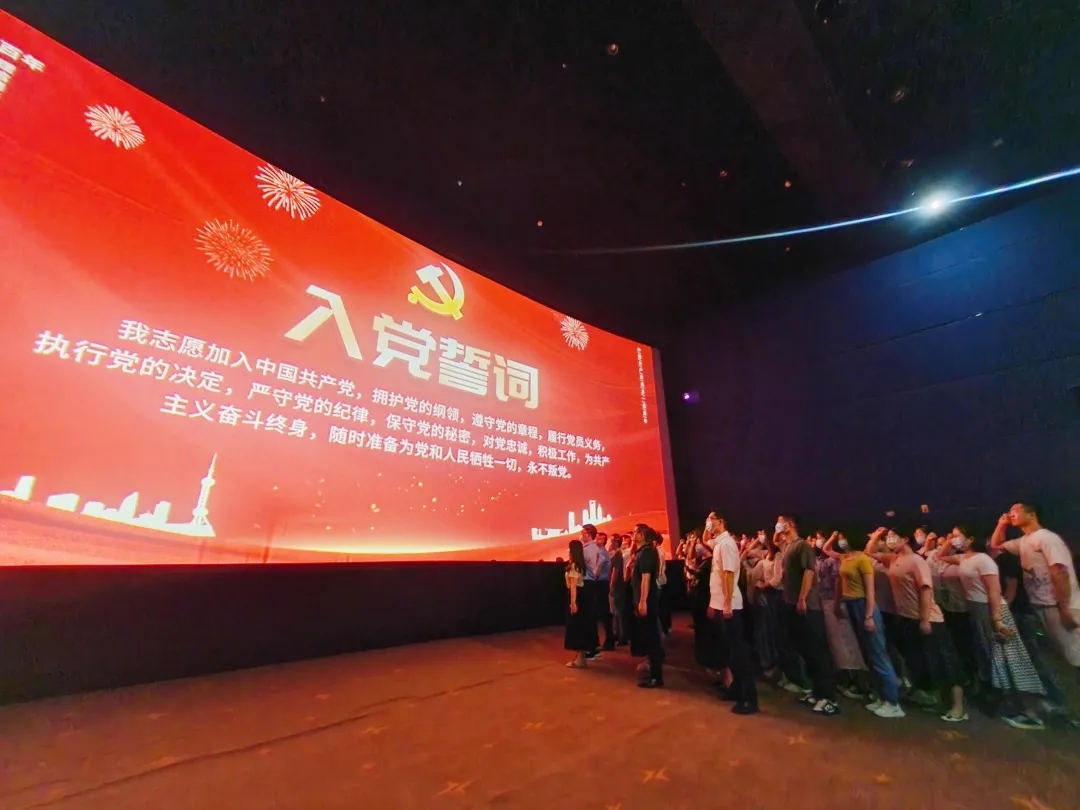 伴随着激荡澎湃的心潮,由党员代表领誓、全体观影人员进行集体宣誓,一张张朝气蓬勃的面孔,一声声充满斗志的誓言,让每个人都接受了一次深刻的精神洗礼,感受着信仰的力量。