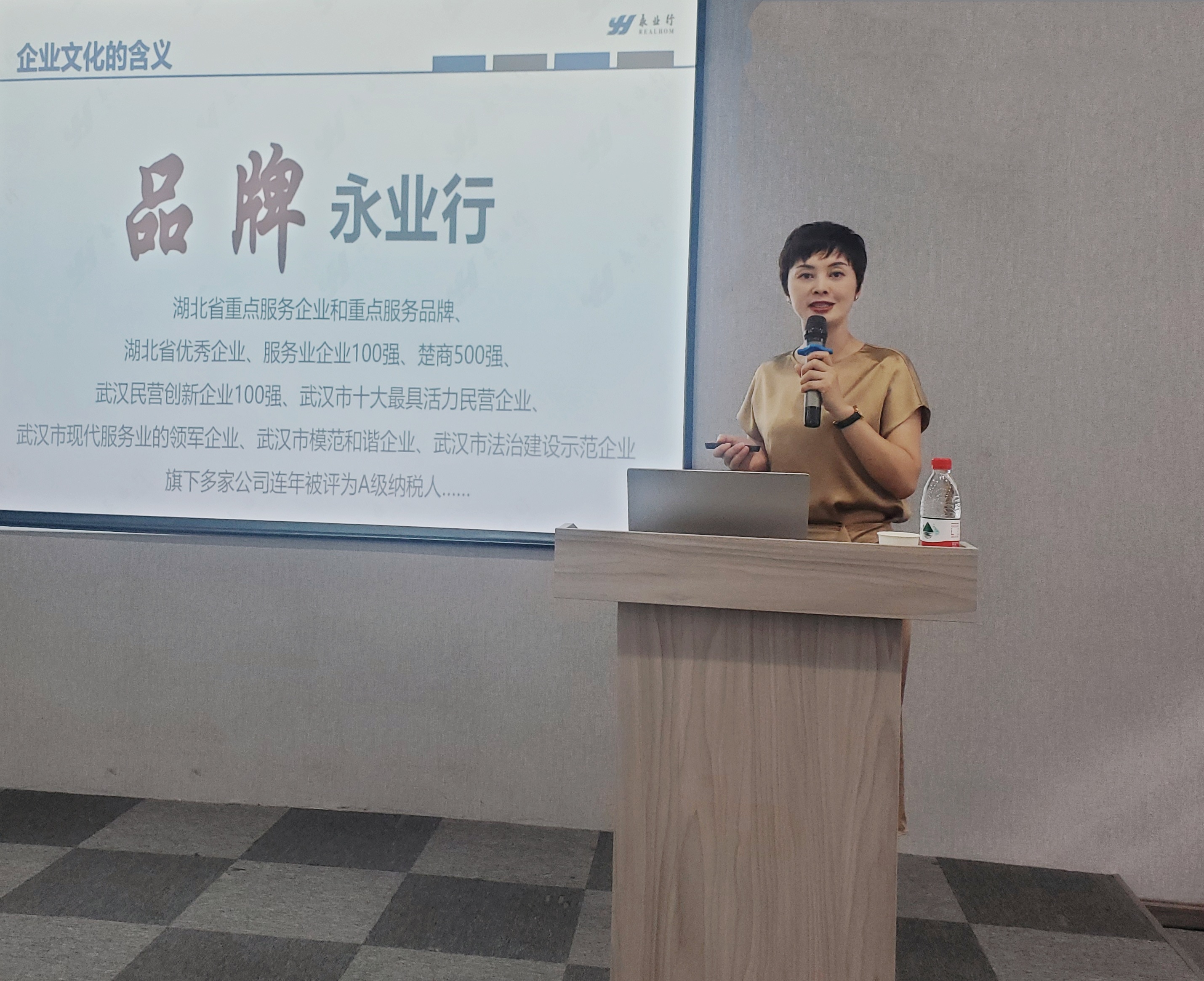 永业行是企业宝贵的精神财富,为引导新员工自觉践行永业行的文化理念,增强思想认同、价值认同和情感认同,公司轮值总裁王琴为新员工系统回顾了永业行的建设历程,以及在各个时期彰显出的企业精神,勉励新员工在新的平台上把永业行文化传承好、践行好,用文化引领发展。