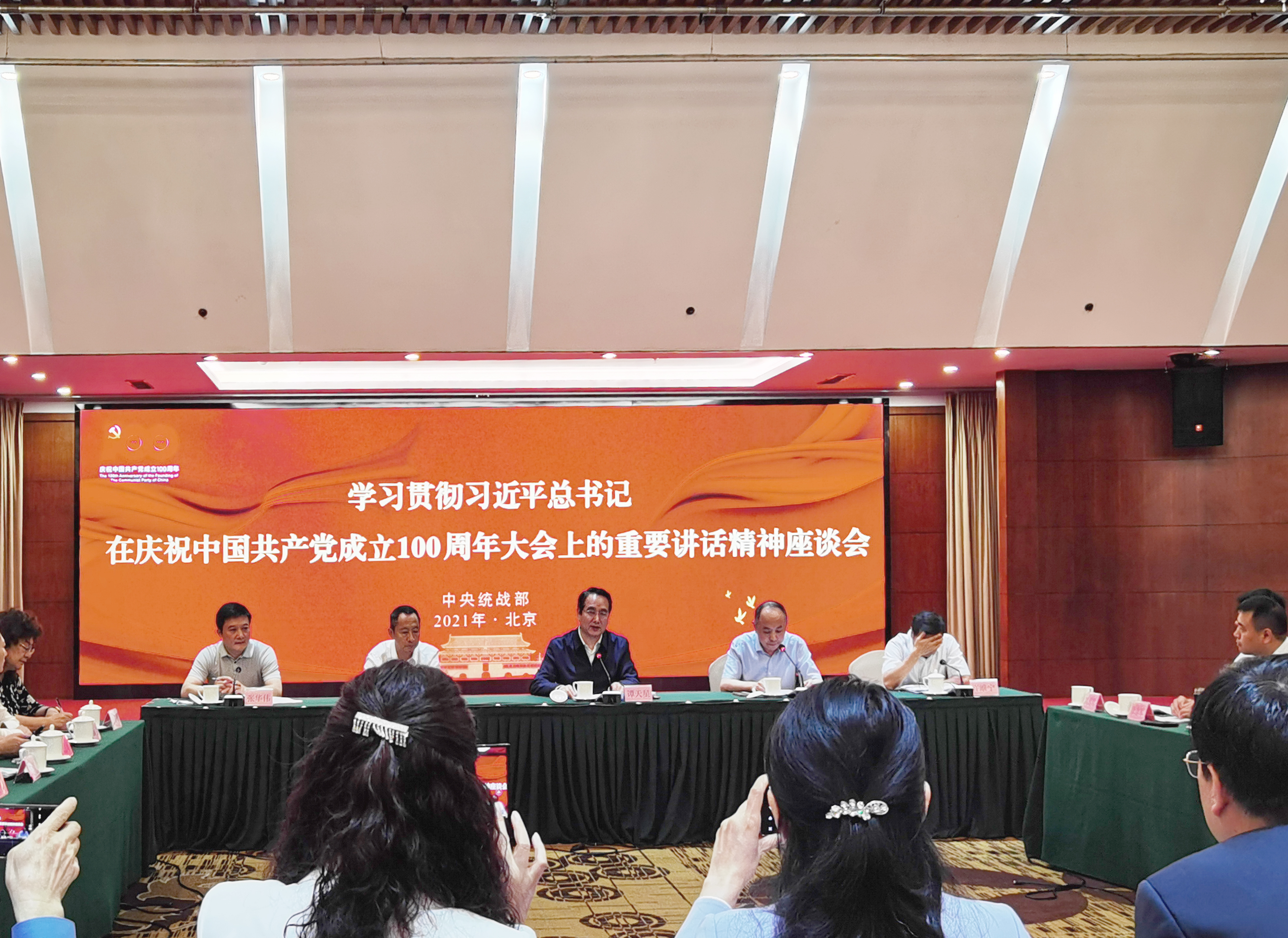 中央统战部六局局长张明主持学习贯彻习近平总书记在庆祝中国共产党成立100周年大会上的重要讲话精神座谈会。9名新的社会阶层代表人士,从不同角度畅谈了学习习近平总书记在纪念中国共产党成立100周年大会上讲话精神的体会感受。