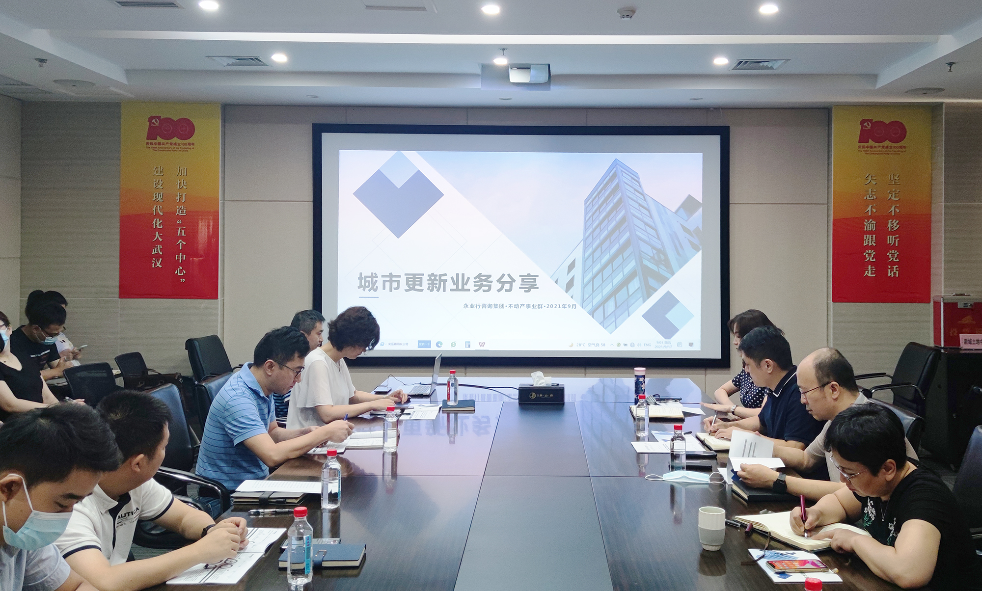 2021年9月17日,应武汉立城建设发展有限公司(以下简称“立城公司”)邀请,永业行不动产事业群首席咨询师兼城市更新事业部总经理张丹带领团队就“城市更新”专题进行培训交流。立城公司党委书记、董事长李敏,总经理叶军,纪委书记姚萍强,副总经理谢静,总经理助理陈轶洁等领导及公司相关部门员工共40余人参加了此次交流。