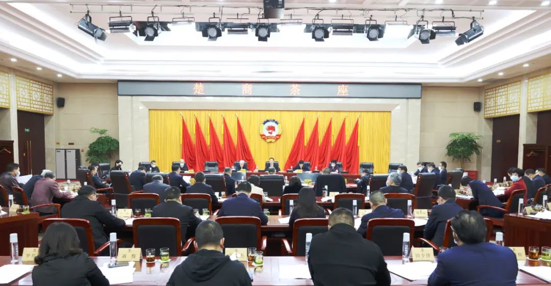 省政协副主席彭军主持楚商茶座,秘书长何光中参加活动。