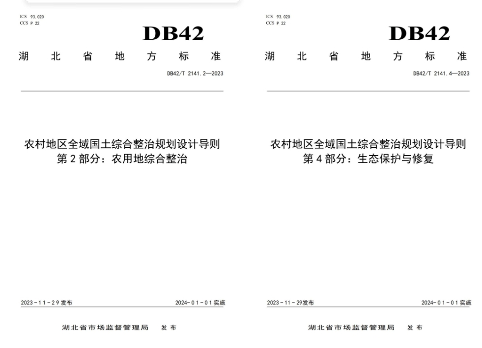 近日,湖北省市场监督管理局发布45项地方标准的公告,永业行参编的《农村地区全域国土综合整治规划设计导则 第2部分:农用地综合整治》(标准号:DB42/T 2141.2-2023)、《农村地区全域国土综合整治规划设计导则 第4部分:生态保护与修复》(标准号:DB42/T 2141.4-2023)批准发布。
