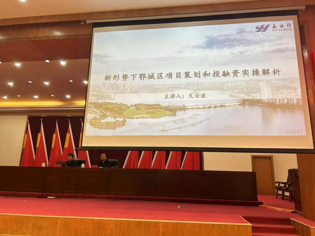 1月7日,鄂城区人民政府召开空港鄂城高质量发展讲坛,永业行高级副总裁、研究院院长文云波受邀作《新形势下鄂城区项目策划和投融资实操解析》专题培训交流,鄂城区区委副书记、区长夏鑫主持会议。