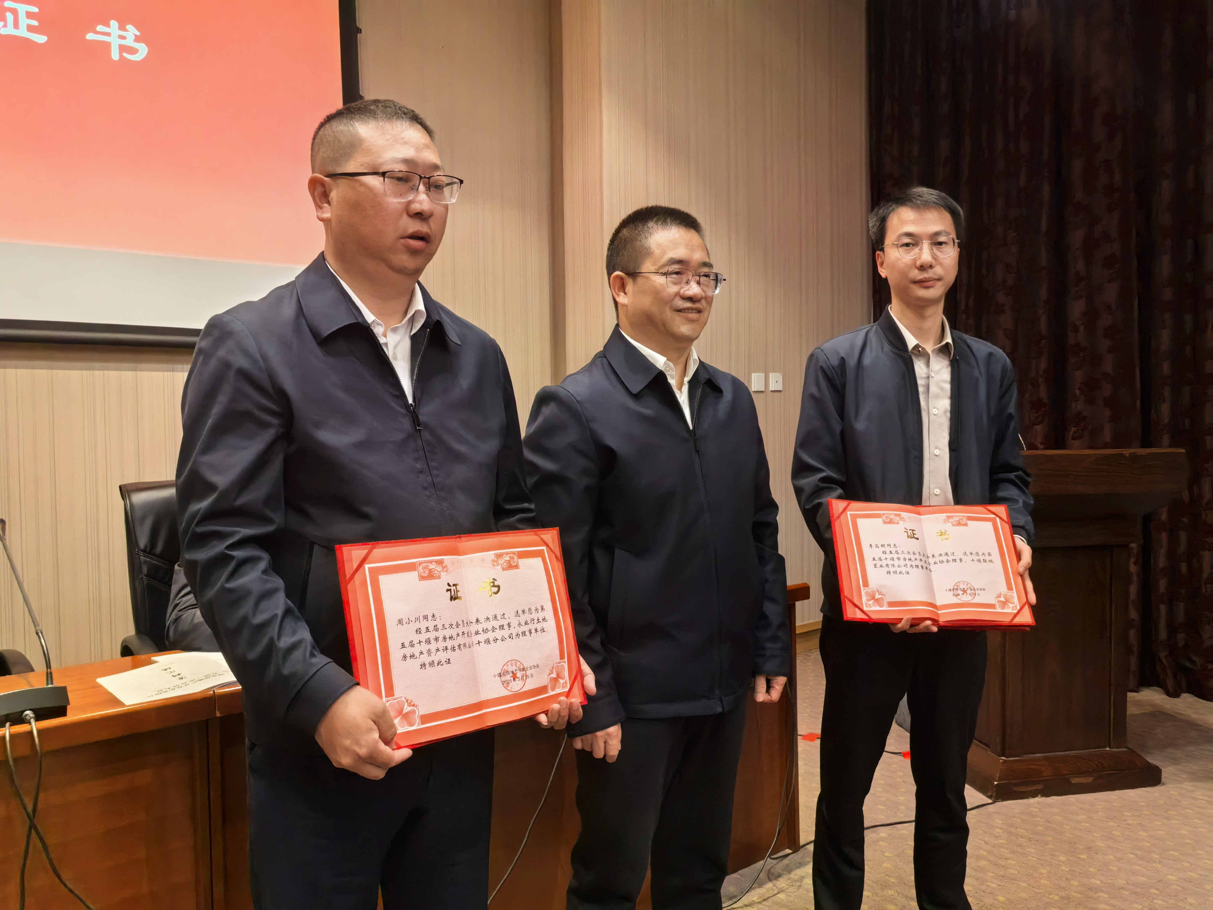 2025年3月25日,十堰市房地产开发企业协会召开五届三次会员大会,十堰市房地产服务中心党组成员、副主任蒋龙军,房地产市场监管科科长李元文参加会议。永业行十堰分部受聘为理事单位,十堰分部总经理周小川受聘为理事并受邀作专题讲座。