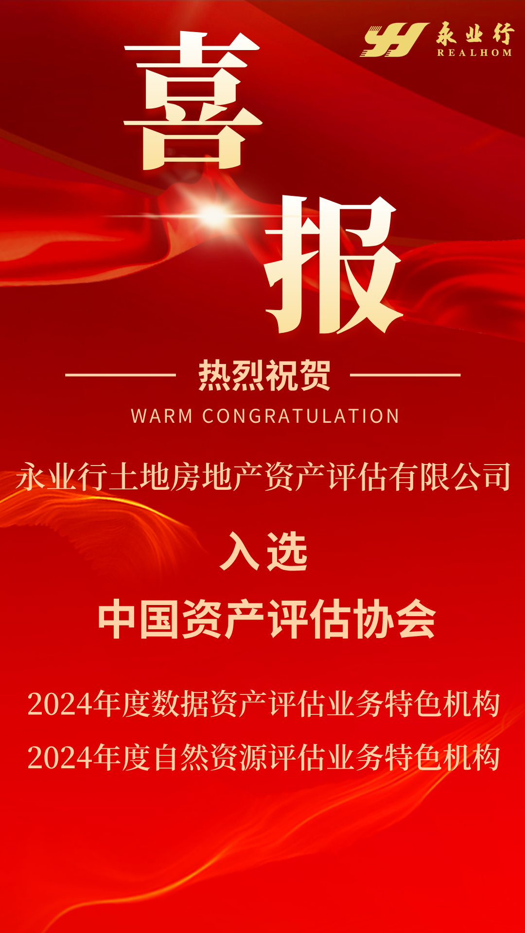 近日,中国资产评估协会发布2024年特色机构名录,永业行凭借在专业领域的突出表现,成功入选"数据资产评估"和"自然资源评估"双项特色机构名录!本次评选全国仅72家机构获评数据资产评估特色机构,162家机构获评自然资源评估特色机构。