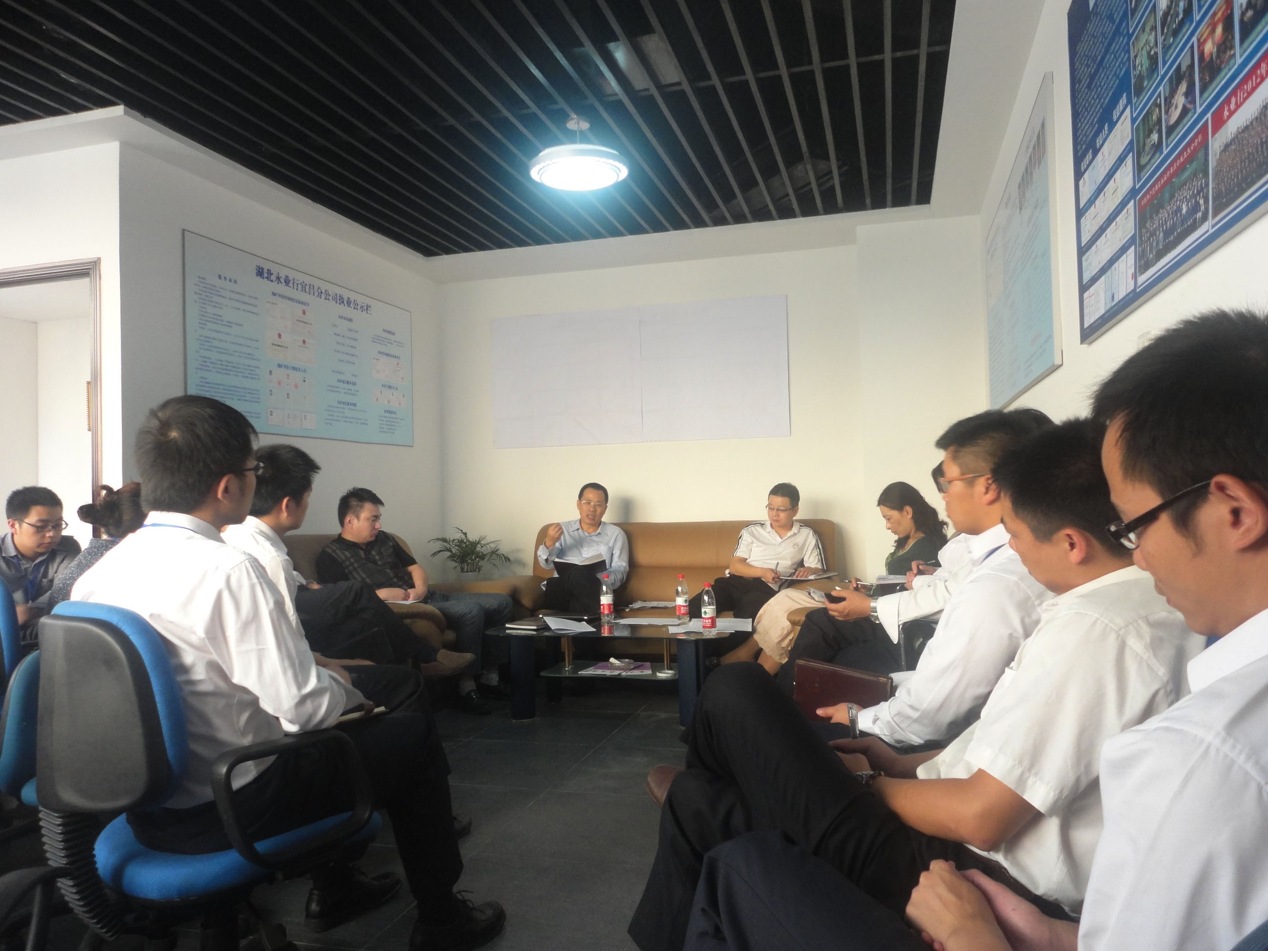 调研中,鄂西南区域分部负责人白继军、恩施分部负责人雷小明分别作了市场业务分析及工作汇报,鄂西南区域分部员工就分部管理、市场拓展、技术管理、业务合作及工作中遇到的问题等内容与潘总等一起座谈交流,并提出了一些好的建议。潘总肯定了鄂西南区域分部取得的成绩,对该分部员工提出的问题进行了现场解答,并鼓励大家主动发现问题、解决问题,勇于创新。此外,他还对鄂西南区域分部的发展提出了新的希望和要求。综合部负责人杨雪莲、人力资源部负责人杨乐与该分部员工一起学习了综合管理制度及会议纪要、人力资源管理制度有关内容,技术部助理总经理汪蓓蓓为大家作了环评业务知识培训。