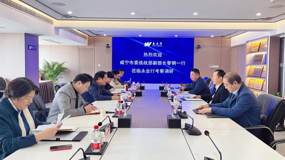 3月31日,咸宁市委统战部副部长黎钢一行莅临永业行考察交流。省政协常委、省新联会副会长、永业行董事长潘世炳,永业行常务副总裁吴学锋等热情接待并与考察组座谈交流。